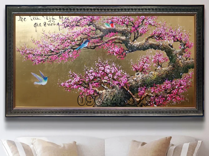 Giá: Liên hệtranh hoa đào dát vàng mã HD03