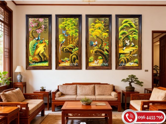 Giá: 3,500.000 VNDtranh tứ quý tùng cúc trúc mai, tranh xuân hạ thu đông MÃ TQ01A