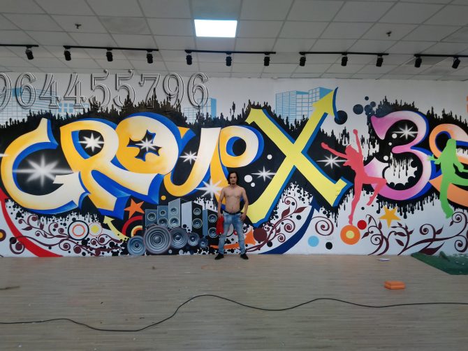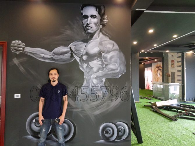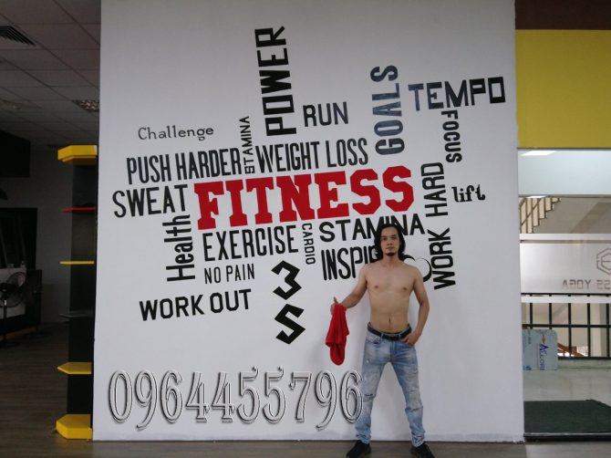 vẽ tranh tường phòng yoga 3s fitness từ sơn bắc ninh