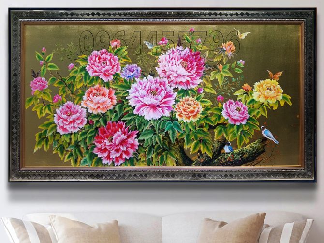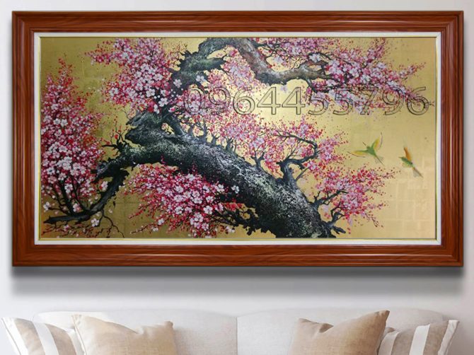 Giá: Liên hệtranh sơn dầu dát vàng tranh hoa đào
