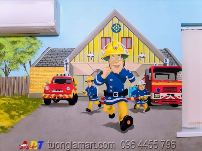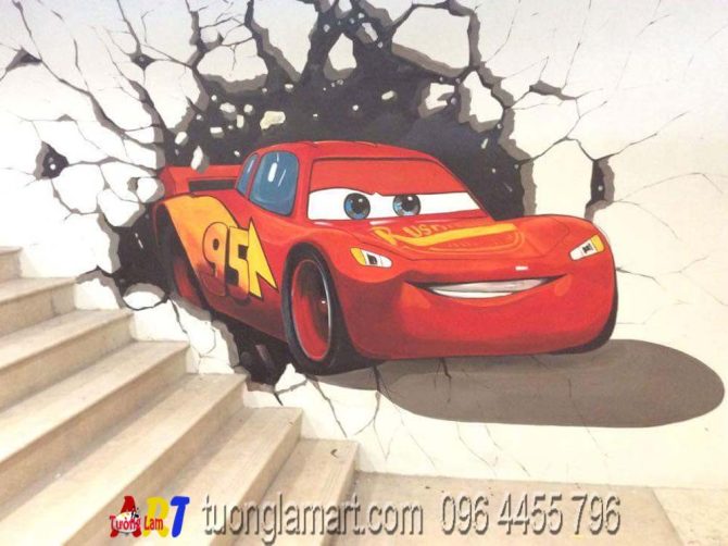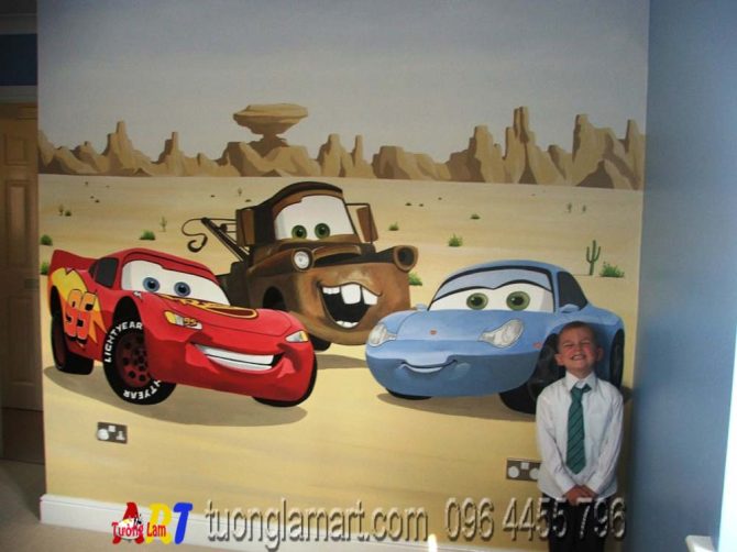 vẽ tranh tường phòng bé trai ô tô cars 2