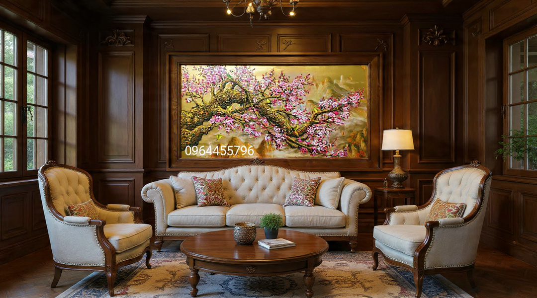 Sang trọng và Đẳng cấp: Chất liệu dát vàng làm tăng thêm vẻ đẹp quý phái, lộng lẫy và giá trị nghệ thuật cao cấp cho bức tranh, thể hiện gu thẩm mỹ tinh tế của gia chủ.