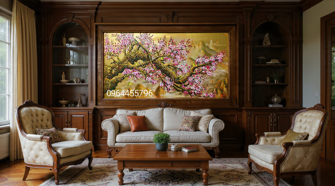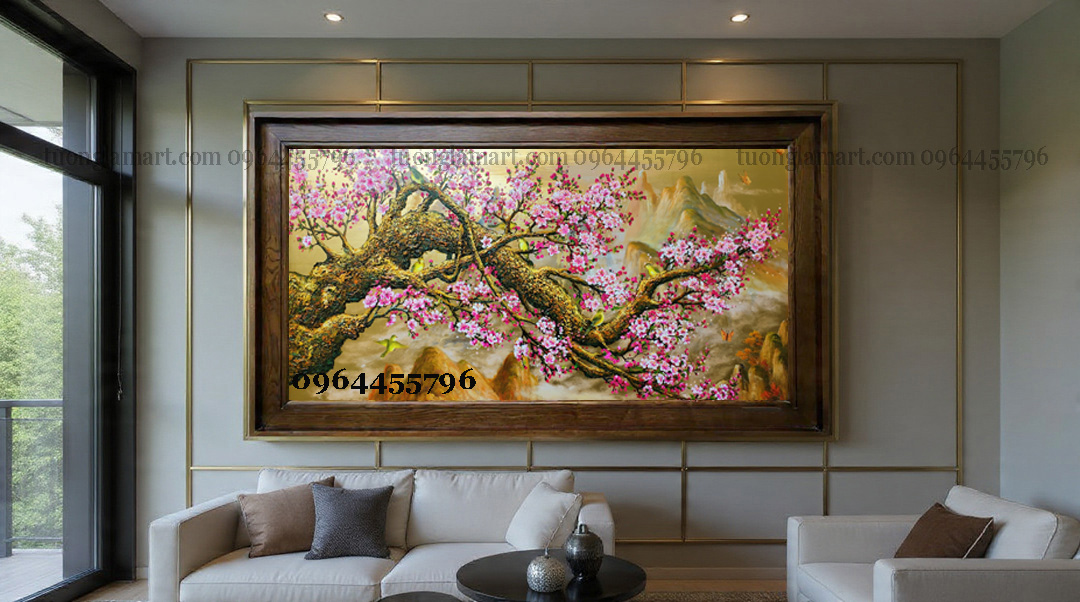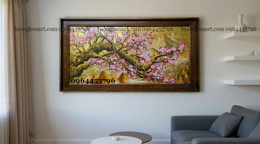 Bức tranh Hoa đào cổ thụ trên nền dát vàng là một vật phẩm phong thủy và trang trí vô cùng ý nghĩa, gửi gắm lời chúc về: